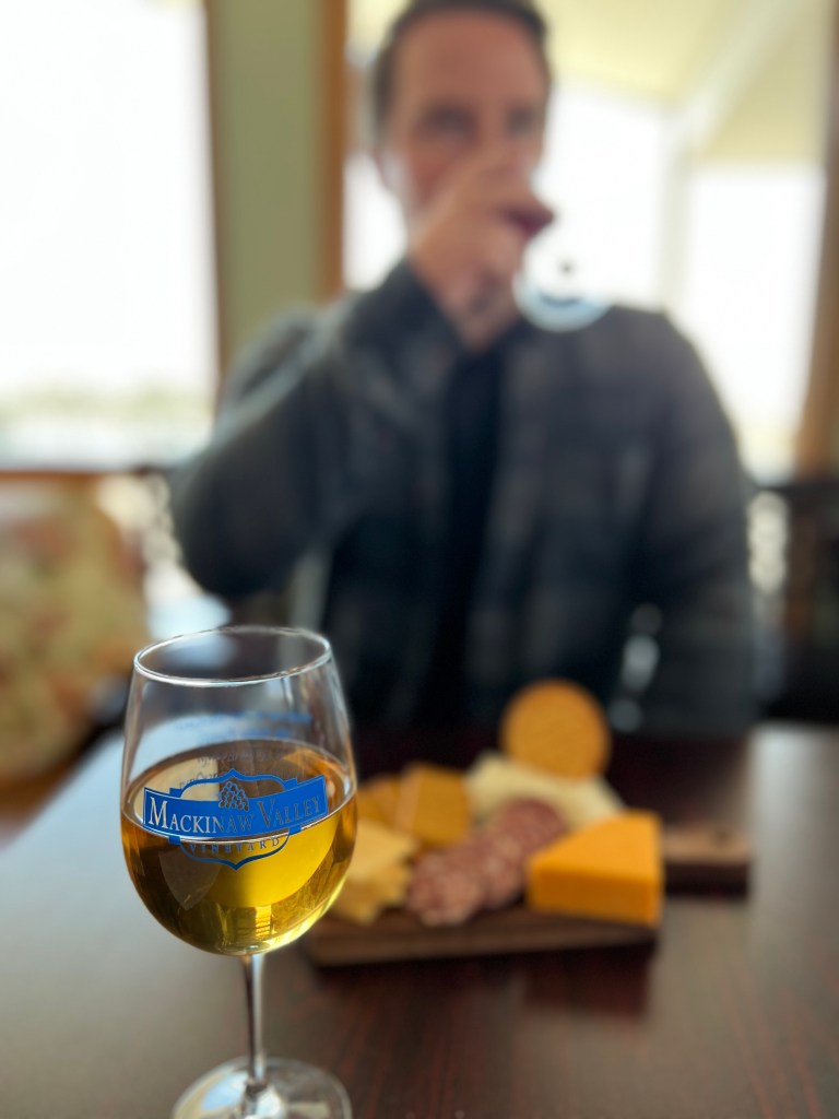 In the photo above, I’m enjoying the Red Dragon while my wife is sipping on the White Dragon. Also, can I just say how wonderful my wife did on putting together this charcuterie board? Mackinaw Valley Vineyard allows you to bring in your own crackers, cheese and meat if you’d like. So we did!