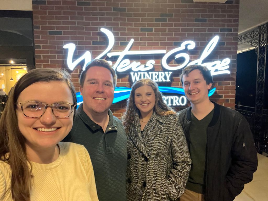 Here we are cheersing our Moscatos with our friends’ glasses of Cabernet Sauvignon. They enjoy the drier wines, which there are multiple to choose from here!