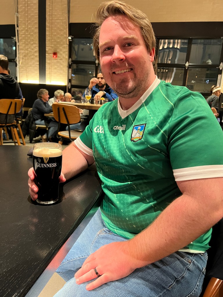Of course I had to wear my Limerick GAA (Gaelic Athletic Association) hurling jersey! If you’ve never heard of hurling, I’d highly recommend looking up highlights on YouTube, it seems so fun!