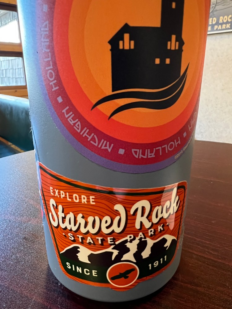After trekking back to where I first entered the State Park’s hiking area, I decided to stop by the Visitor’s Center to check out the stickers they have. The last year or so I’ve started collecting stickers for my water bottle of the different places I’ve been. I’m happy to add Starved Rock State Park to the list!