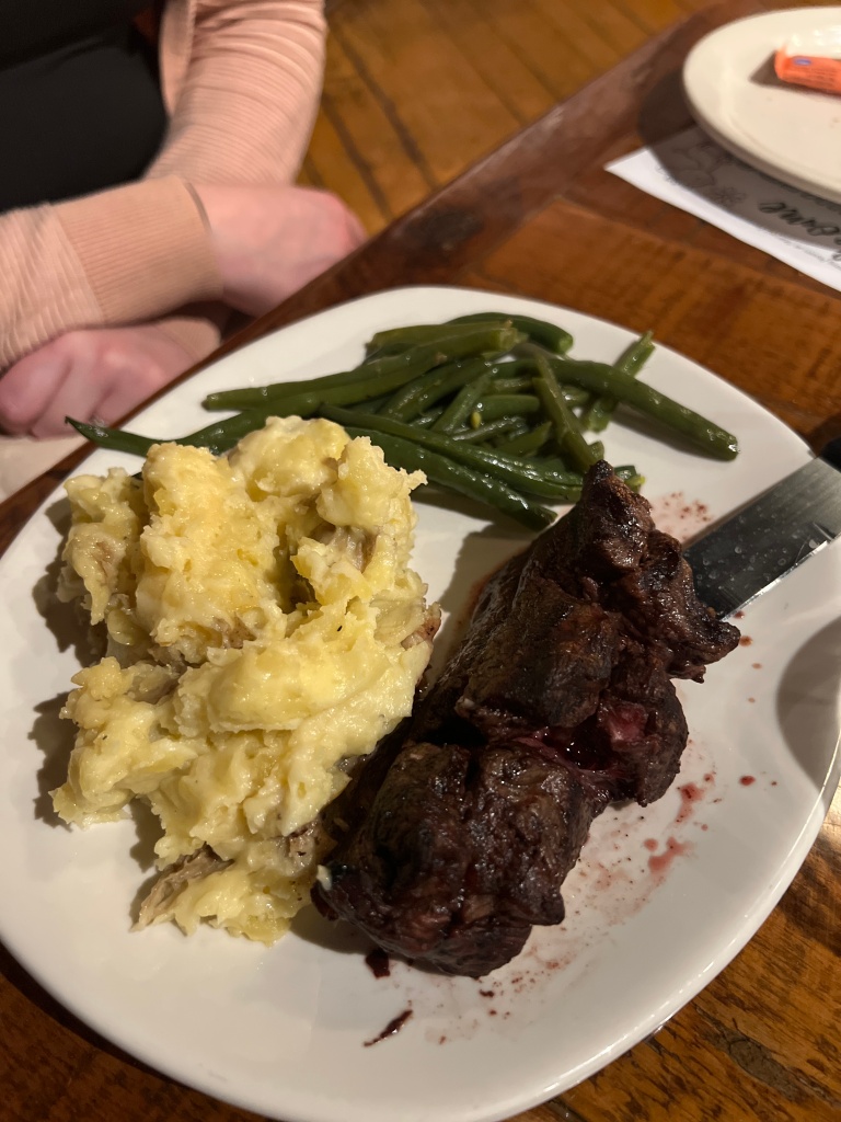 Rachel’s filet mignon lived up to the expectation once again, and she got green beans and mashed Yukon gold potatoes for her sides.