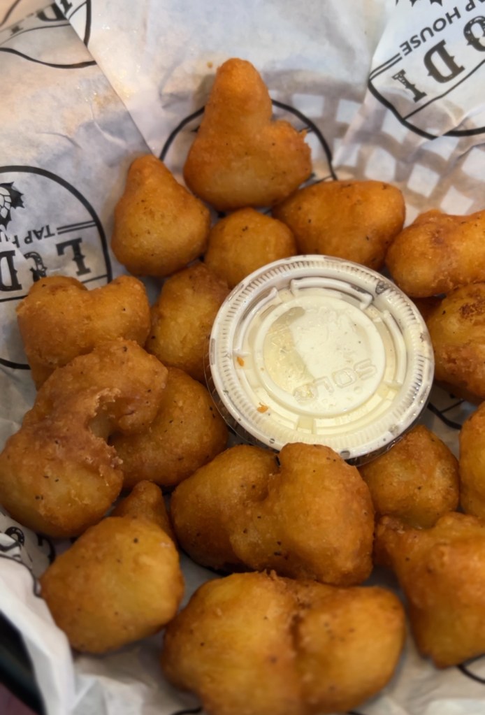 I’m gonna say it, they have my FAVORITE cheese curds ever. Beer battered, flaky, cheesy goodness. Let’s take a look.