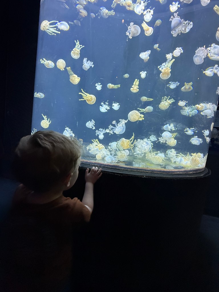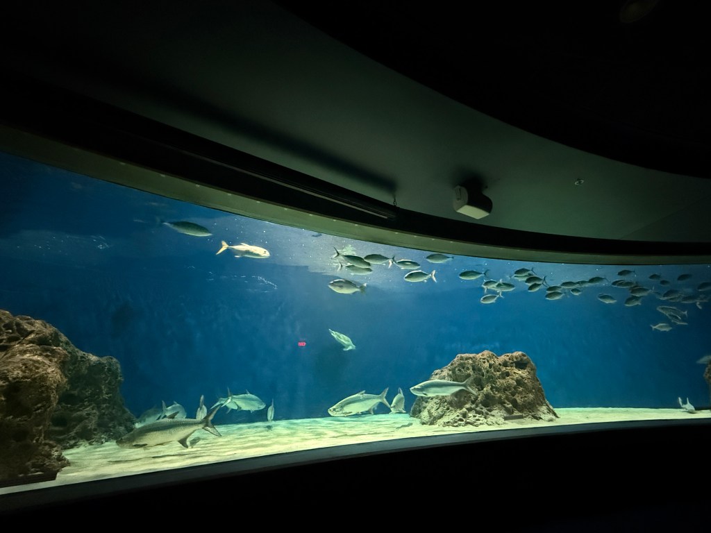 We visited Arizona’s largest aquarium, located in the Scottsdale AZ Boardwalk! OdySea has the absolute coolest bathroom I’ve ever seen. Where the mirror would be, you’re looking into a shark tank! We had so much fun at OdySea seeing the sharks, jellyfish, penguins, otters and more. Some of the best parts were the interactive activities available. There’s an “underground submarine” where you sit in chairs that rotate you through four different scenes. Each scene is a tank full of water and sea creatures. One tank has sharks, another has sea turtles, then there are sea lions! It’s super fun. There’s also an escalator you can ride down that goes underneath a fish tank. I even did a virtual reality deep sea dive seeing a digital squid. Very cool!