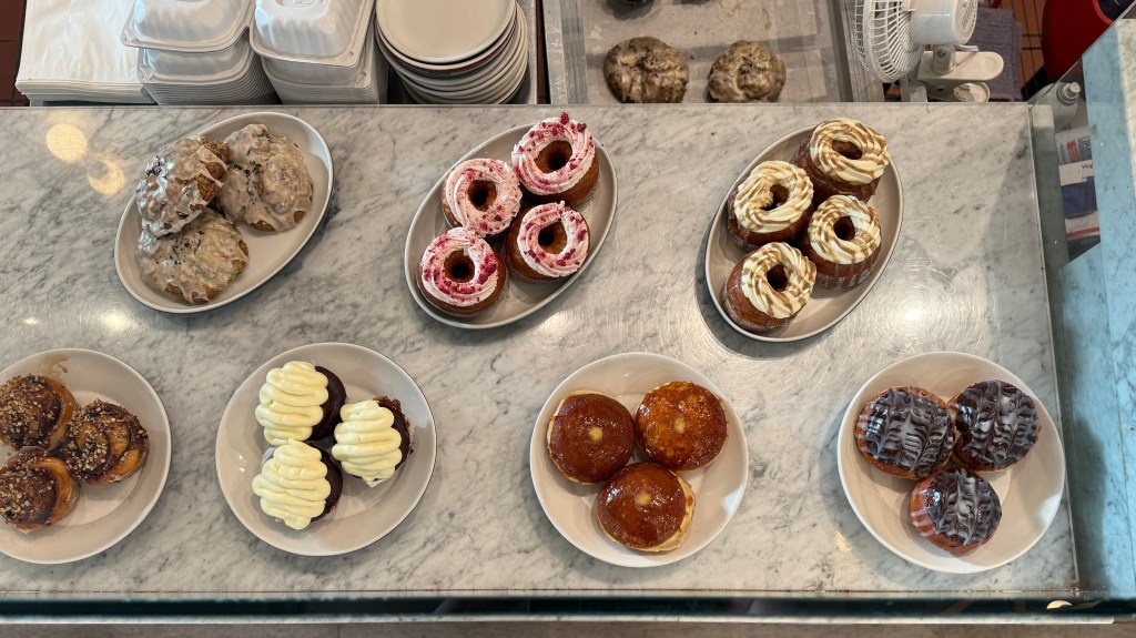 I think I can confidently say Prep & Pastry is one of the most aesthetically pleasing restaurants I’ve ever been to. And their pastries? I need them delivered to my house ASAP. We got a red velvet “dossant” (donut/croissant crossover) and a Crème brûlée donut. I have dreams about these. Rachel got the chicken and waffles and I went with a Southwest Croissant Sammie. The signature coffees were also delicious. I think we need one of these in Illinois… like yesterday!