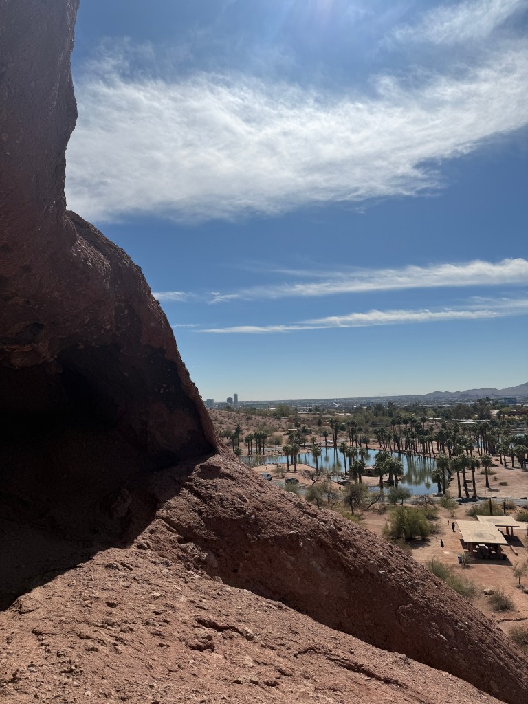 This free, somewhat easy hike is right by the Desert Botanical Garden and Phoenix Zoo. If you’ve got toddlers, I’d recommend wearing them in a hiking carrier on your back, or taking your time going up and down the hill. It’s really not steep at all, but you are literally walking on a rocky surface the entire time. There are great views at the top, but there were a decent amount of people at the hole, which made my photos not as great as I expected. But that’s OK! The hike is very accessible. You can park right downhill from the Hole in the Rock and walk right up to it. You circle around the rock for a few minutes before heading up some man-made stairs. Then you walk up a little more and are at the hole!