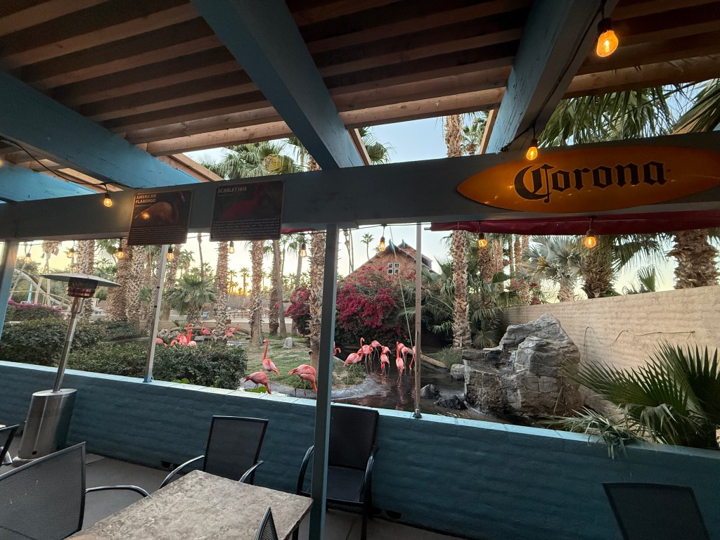 Flamingos. You can either enjoy some BBQ ribs inside with the sharks, or on the outdoor patio with flamingos. We went with the sharks! I got the “brontosaurus beef ribs” which were fantastic. Bennett loved chowing down on his chicken tenders, fries and mac n cheese. The BBQ sauces are great as well!