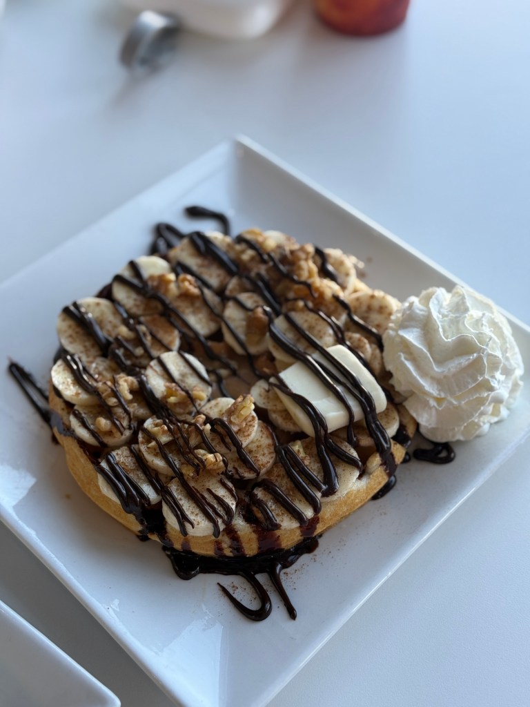 We love a good, trendy breakfast spot. And Phoenix has plenty of them! Introducing Crepes Churros and More. A great place for blended drinks and breakfast food. We got a sweet crepe, savory crepe and waffle that were all delicious. You can see my beautiful wife and kids taking advantage of the adorable backdrop located inside.