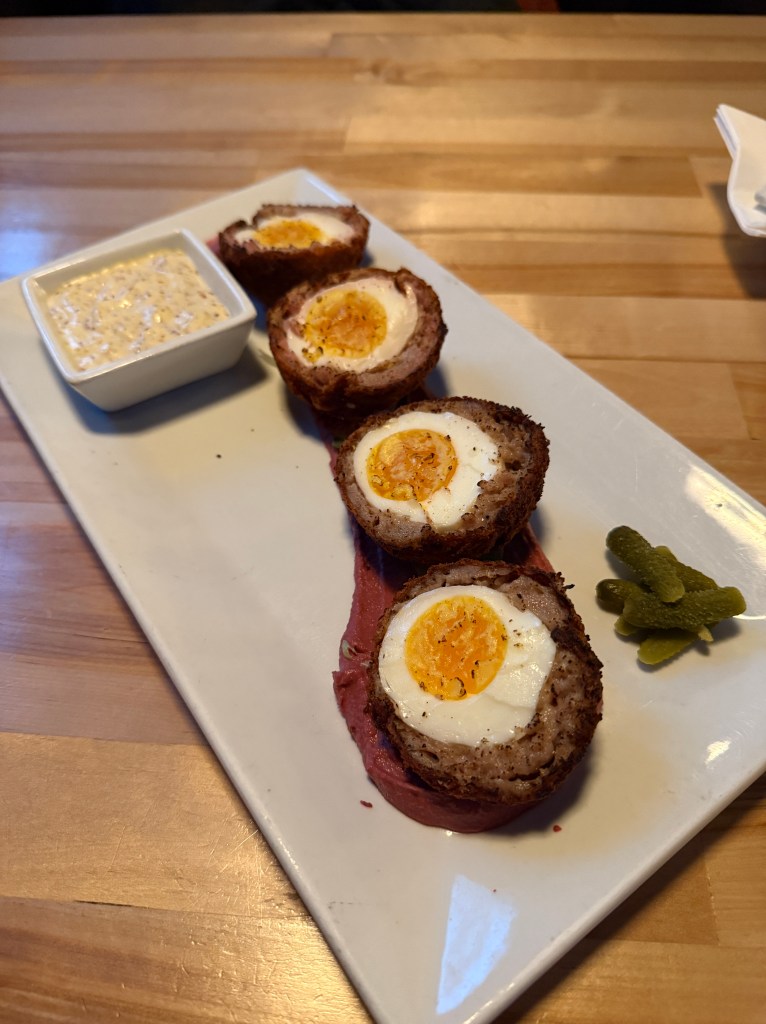One of the hardest things for a restaurant to do is find its identity. There’s almost a story to tell when someone steps foot in your establishment. Who runs this place? Why do they make the food they make? Why am I here? Well, I can confidently say Underground Public House knows its identity, and its high-quality food, drinks and service proved that to me. Heath was our server, an absolute gem of a human. He made us laugh, stayed attentive to whatever we needed, and gave fantastic insights into every dish and drink item. Come to find out, I’m a huge Scotch eggs fan! It came with Oktoberfest sausage, smoked Gouda and more – all wrapped in Oktoberfest pretzel crust. Absolutely fantastic. My THEE P.B.R. (Pork Belly Reuben) was amazing as well. That meat was some of the most high-quality meat around. Perfectly cooked, the texture was just right, a nice amount of smokiness, and tender as can be. Rachel really enjoyed the filet mignon, and I ordered both a Black + Blue Daily cocktail and a Nerdy Dancing, which is a green beer that tastes like Nerds! Yes, the restaurant really is underground! The vibes here are 10/10, and the food matches that.