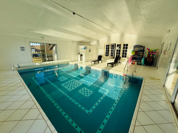 Too cold to take a dip outside? Luckily for you, there’s a heated indoor pool! At the deepest, it’s 7 feet. The more shallow side is 5 feet.