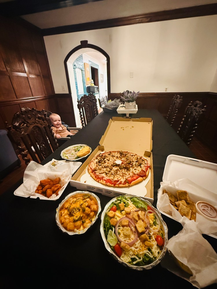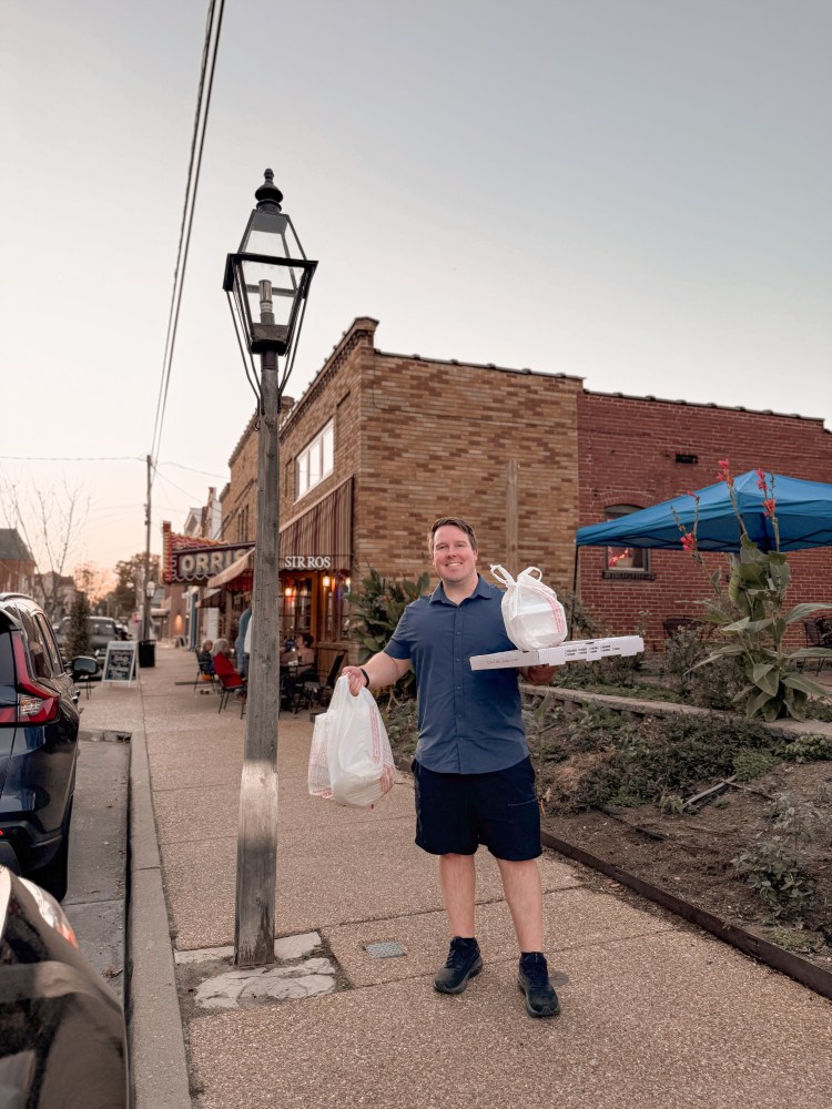 On your way in to St. Mary, stop by downtown Ste. Genevieve and grab a meal to-go from Sirro’s. Delicious pizzas, appetizers and salads are available. We ordered the Sirro’s deluxe pizza, Sirro’s salad, grilled chicken salad, Totchos, Toasted Raviolis, and “Wing Dings” AKA boneless chicken wings. It was all so good!