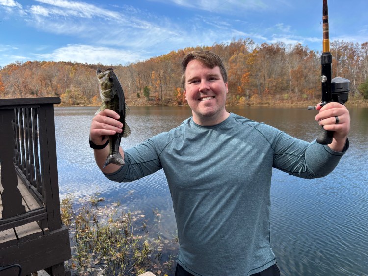 Everyone caught a fish at the on-site lake. While we mostly caught bluegill, you can see a beautiful bass I reeled in during our stay!