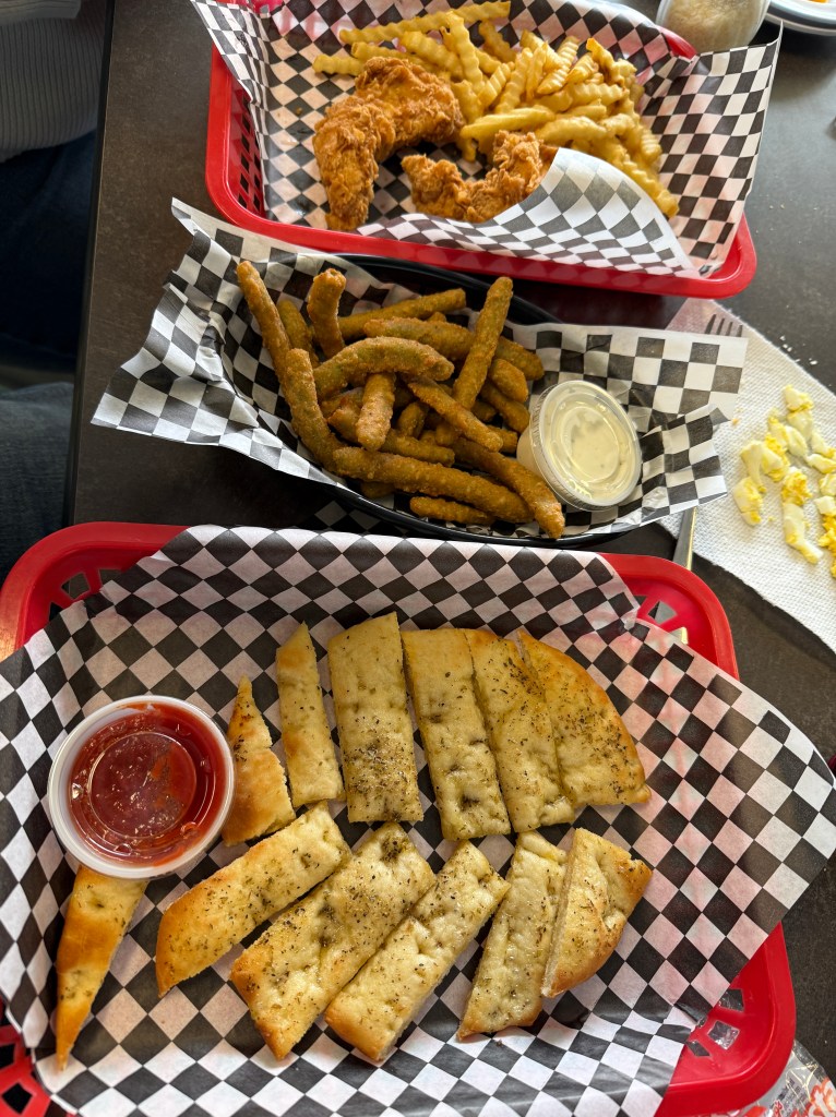 Right in what I’d call the town’s main shopping area, North Kringle Place, you’ll find S&S BBQ & Pizzeria. We’re two-for-two on buffets and salad bars! The salad bar was packed with all the great toppings you’d want. This time, we enjoyed a pizza buffet! S&S also owns Annie’s Ice Cream and Coffee Shop which is in the same building. S&S is decorated all out, not for Santa, but for The Grinch! Once again, the staff was super great and welcoming. Make sure to get the fried green beans as an appetizer! The bread sticks are also perfect for kids to enjoy.