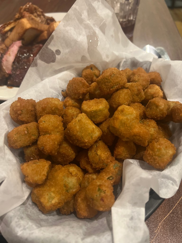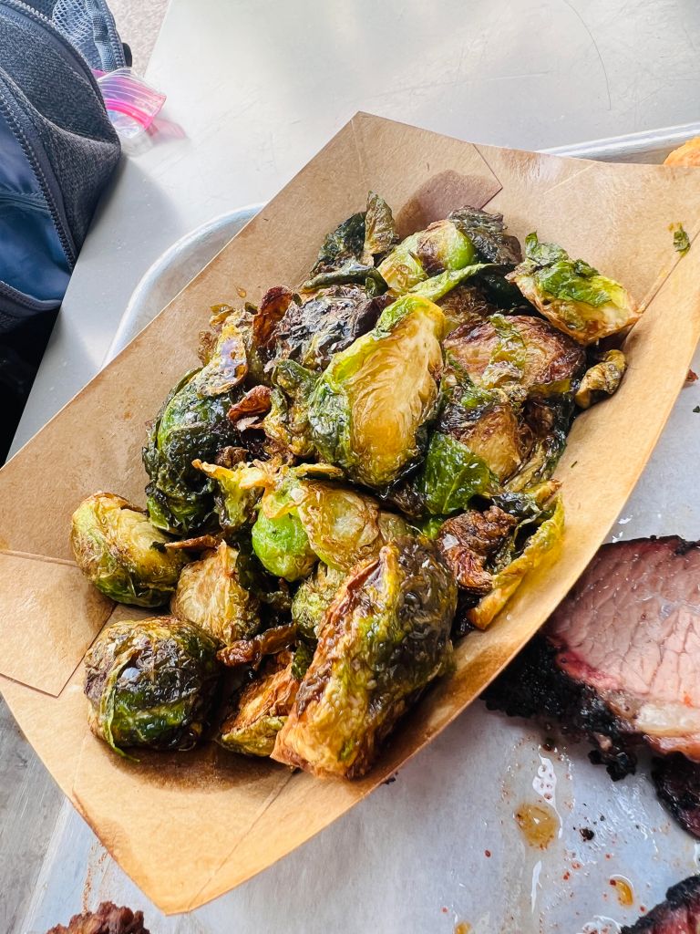 Of course I had to show a closer up photo of the brussel sprouts. Doused in whiskey caramel, these sauteed veggies have a nice bit of sweetness to them. “They get better the further down you get in the basket,” my wife said.