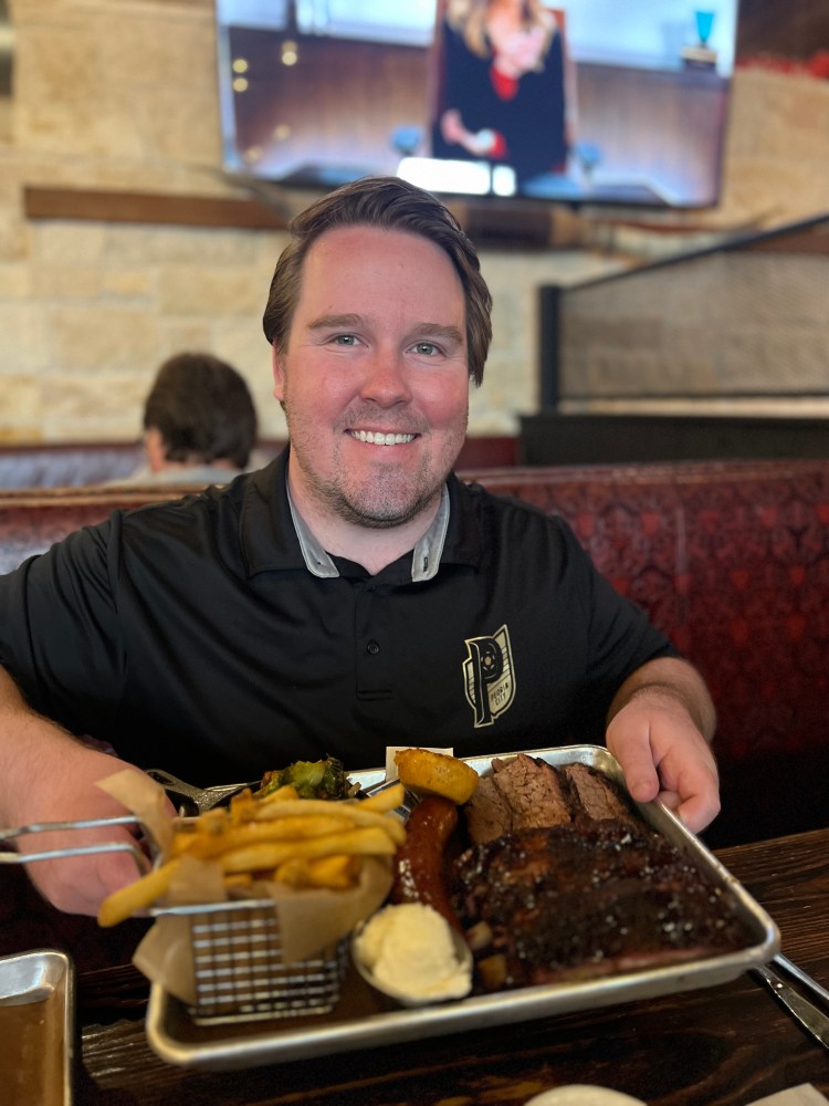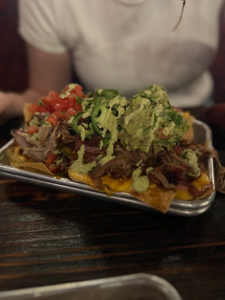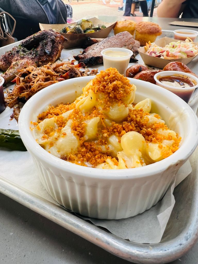 Meet the Butcher Block. While the menu says it’s “for 2,” this could easily feed 3-4 people. You get pulled pork, brisket, chicken and cheddar sausages for the meat alongside cole slaw, pickles and corn bread. Plus, two sides of your choice! I went with the mac n cheese and brussel sprouts. AMAZING!