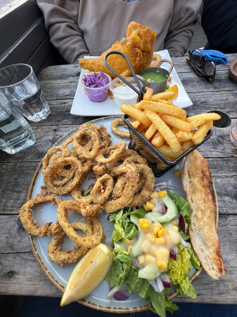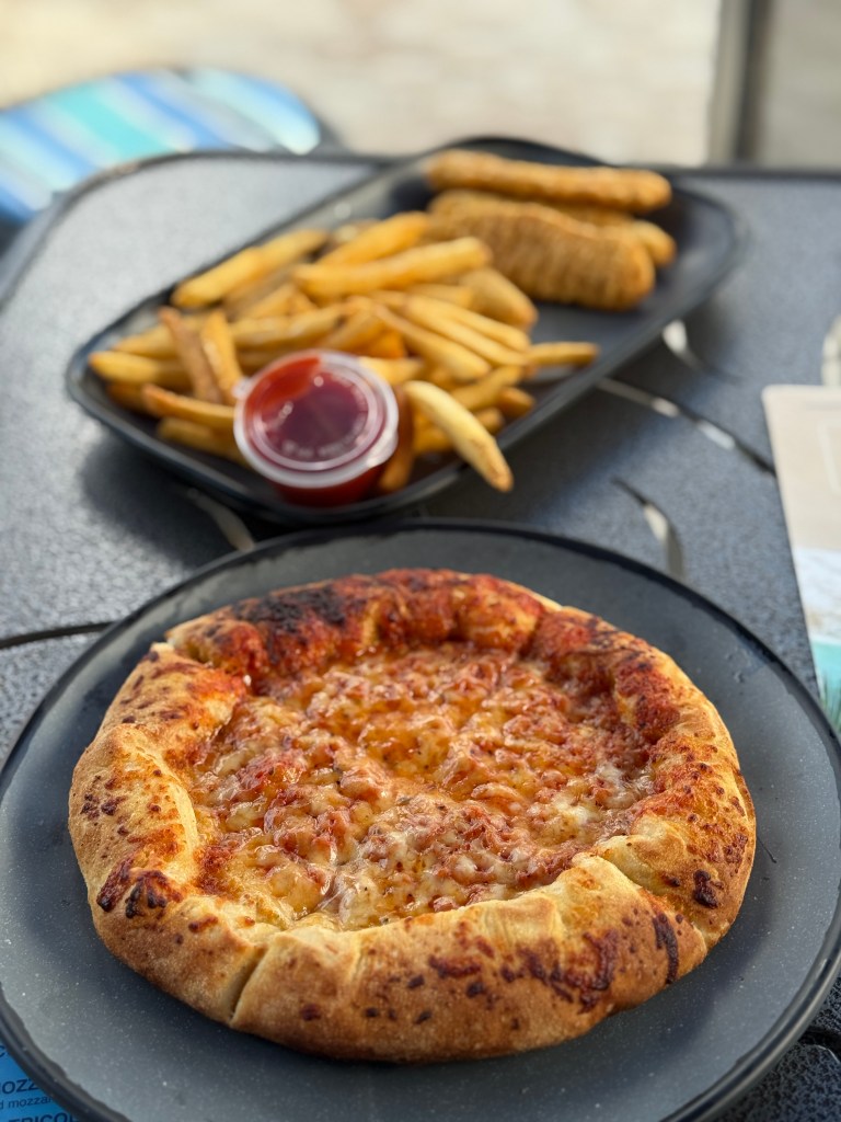 Our server was wonderful, and the food was great! Like I said, you can order off the menu and get a chicken philly cheesesteak, which Rachel enjoyed, or chicken nuggets & fries, which Bennett ate. I’ve got a seafood lover in my daughter Mattie, which makes this dad happy. She chowed down on the fish, mashed potatoes and green beans with me.