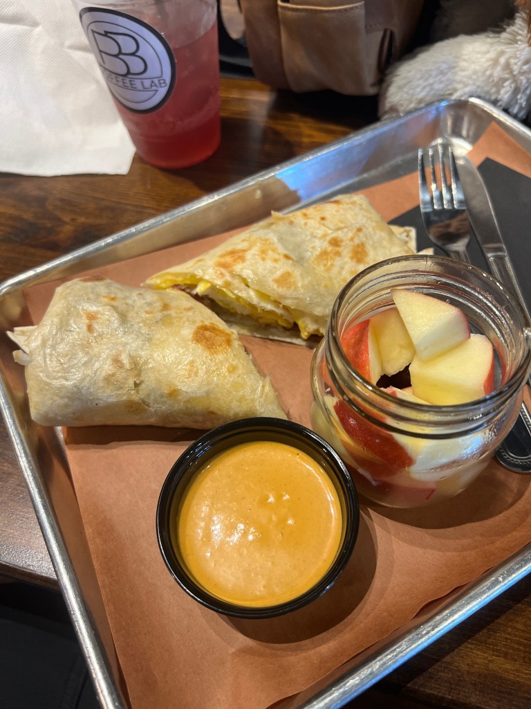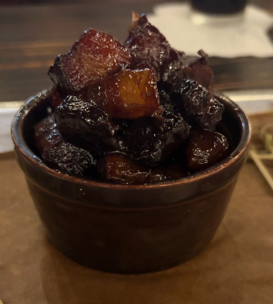3: Caramel Apple – let’s talk about this one. Both Chris and I tried this one, since it was a cool fall day, we felt like we had to! First it was served chilled, and I wasn’t a huge fan. It reminded me of medicine. But then… the bartender let us try it heated, as they had a batch warming up on the bar. MUCH BETTER. This reminded me of a mulled wine or even a hot apple cider.
