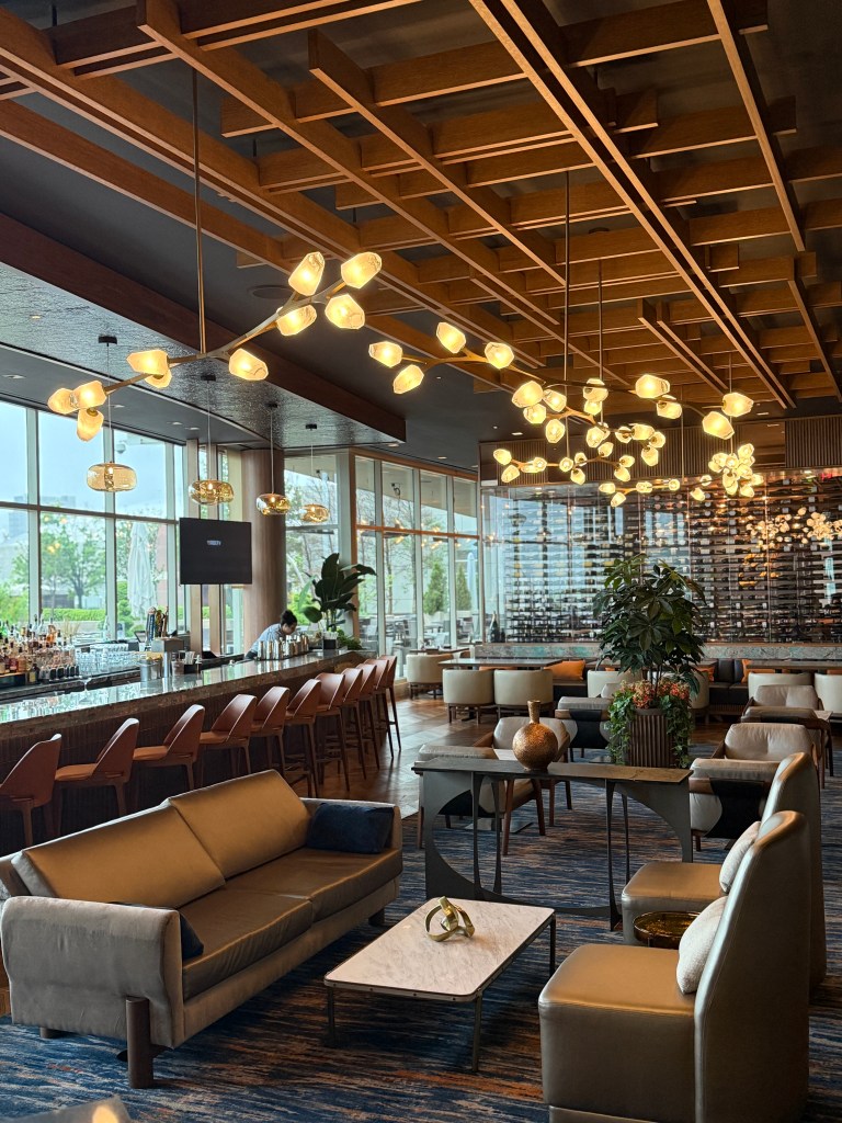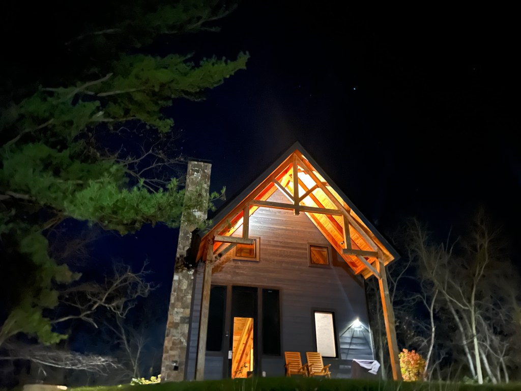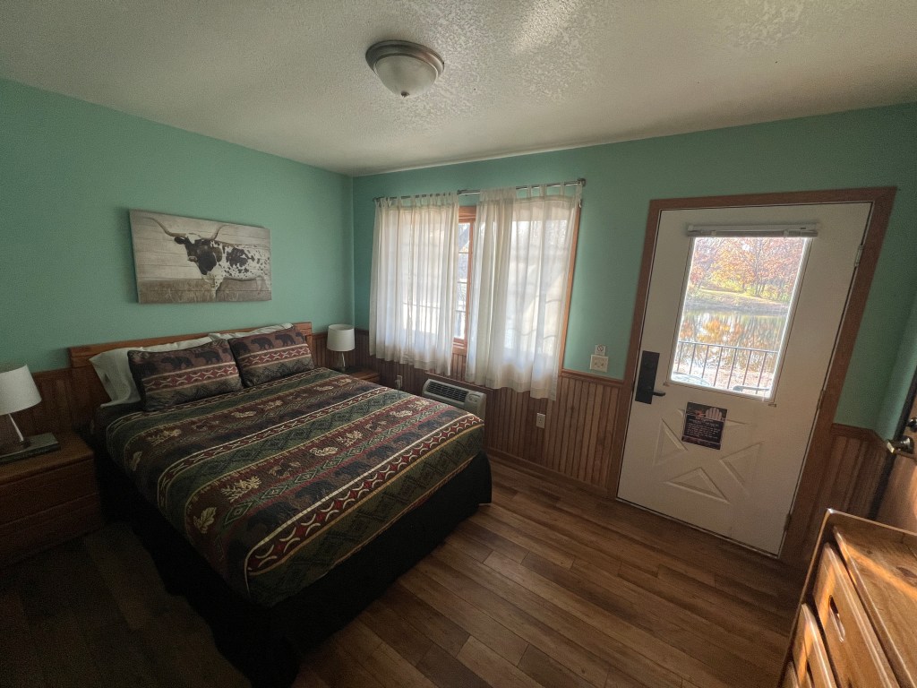To match the cabin vibes, we stayed in the lodge bedroom that is up the stairs from this area. A very comfortable king-sized bed and modern bathroom highlight the very spacious room.