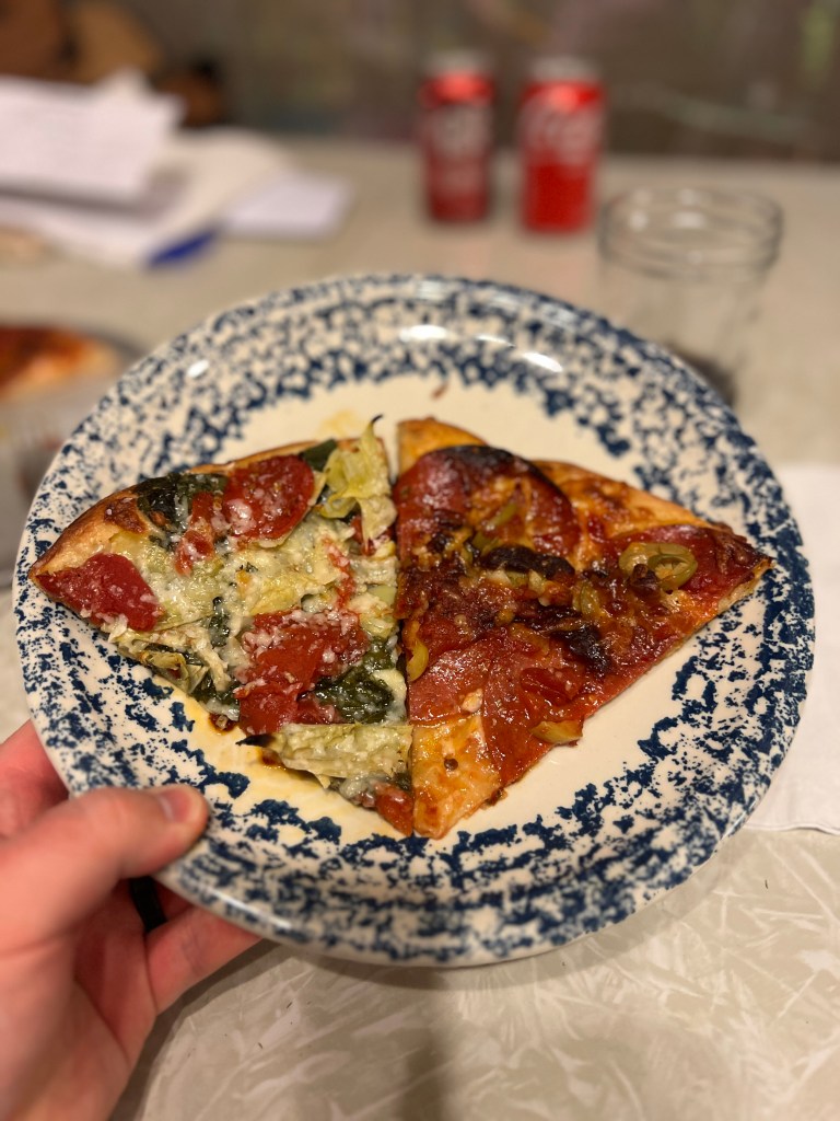 On your way in to St. Mary, stop by downtown Ste. Genevieve and grab a meal to-go from Sirro’s. Delicious pizzas, appetizers and salads are available. We ordered the Sirro’s deluxe pizza, Sirro’s salad, grilled chicken salad, Totchos, Toasted Raviolis, and “Wing Dings” AKA boneless chicken wings. It was all so good!